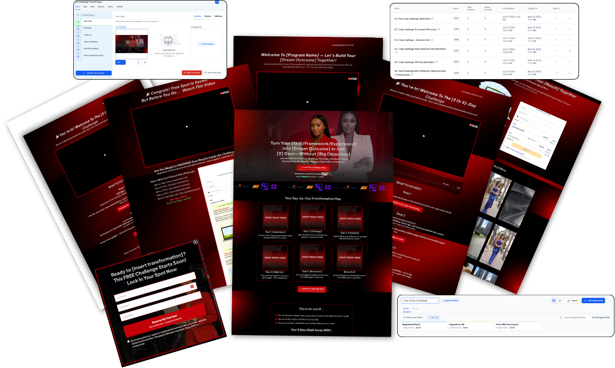 Pre-built funnel pages, connected workflows, pipeline stages, and forms — just plug in your content and go live.